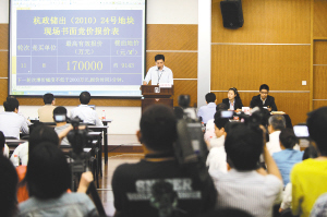 杭州逾400亩土地竞拍达55.6亿元 5月20日,浙江省杭州市举行新“国十条”出台后主城区第二场土地出让会,杭州滨江、田园与笕桥各有一宗面积超百亩的地块推出,总面积约417.8亩,可建建筑面积71余万方,经过竞拍,三宗土地最终拍卖总金额达55.622亿元。新华社发