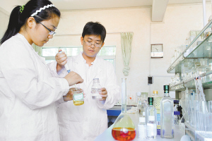 中国热带农业科学院椰子研究所,从2006年开始研发的椰香浓郁的椰花醋、椰花汁饮料、清淡的椰花酒和椰花果酒等产品,近期分别获得了国家知识产权局颁发的发明专利证书,目前已开始进行小批量生产。这4项新产品研发成功,使海南特色旅游商品又添新贵。图为5月21日,两名科研人员正在实验室进行椰汁营养分析。 本报记者 苏晓杰 通讯员 林洪生 刘倩 摄