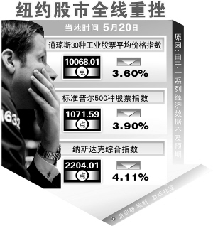 美国20日公布的一系列经济数据不及预期,将已被欧洲主权债务危机压得透不过气的美国股市一下子打入“深调”境地。当天收盘时,纽约股市三大股指与一个月前创下的反弹高点相比下跌10%以上,出现本轮牛市以来第一次真正技术意义上的“回调”。