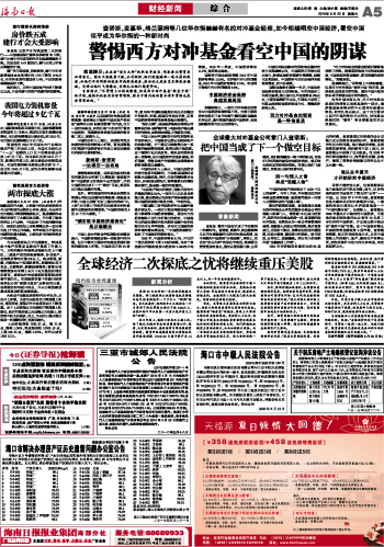 海南日报 财经新闻 005 2010-05-221 2010年05月22日 星期六