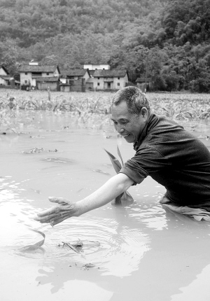 5月21日晚至22日早5时,广西罗城仫佬族自治县出现持续暴雨天气,造成山洪暴发,河水猛涨,数万亩农田被淹,村庄内涝,公路路基被毁,交通中断。 新华社发