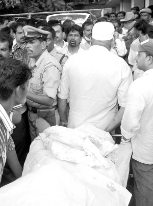 | 五月二十二日,在印度南部卡纳塔克邦门格洛尔市,一名遇难者的遗体被送至一家医院等待身份确认。 新华社发 |