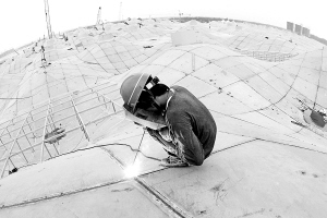 他说,海南国际会展中心屋顶钢结构是国内首创,造型和结构相当特殊。整个会展中心分为上、中、下三层的网架结构,规模大,且构架为网状,由10万多根钢管、3万多个小钢球及3万多块钢板组装而成,而屋顶的钢板网壳则是双曲线波浪型,且弧度大,需要手工切割,致使焊接量大,工序复杂,需要大量的人力,因此,该公司调集了上千工人奋战在施工现场。