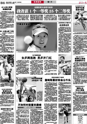 海南日报 体育新闻 014 2010-05-251 2010年05月25日 星期二