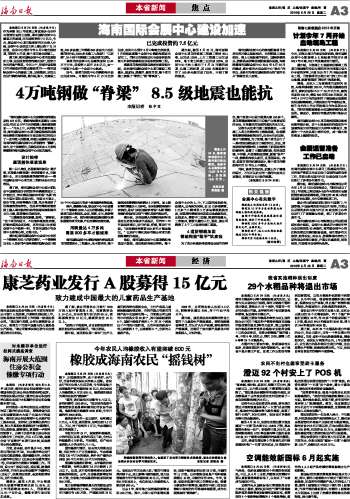 海南日报 本省新闻 003 2010-05-251 2010年05月25日 星期二