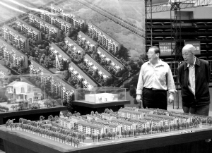| 5月,苏州市民在春季房展会上观看楼盘模型。与调控前苏州楼市的火爆状态相比,此次展示会明显冷清,由于售价依旧居高不下,购房者大多选择观望。 新华社发 |