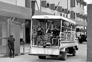 | 牙买加军警把被打死的武装人员尸体运至一家医院。 新华社/法新 |