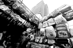 5月27日,一名小商贩在菲律宾首都马尼拉一个街头市场摆放学生书包。 据菲律宾官方统计的数字显示,菲律宾今年第一季度经济同比增长7.3%,为9年来单季增长最快。 新华社/法新