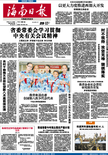 海南日报 头版 001 2010-05-291 2010年05月29日 星期六