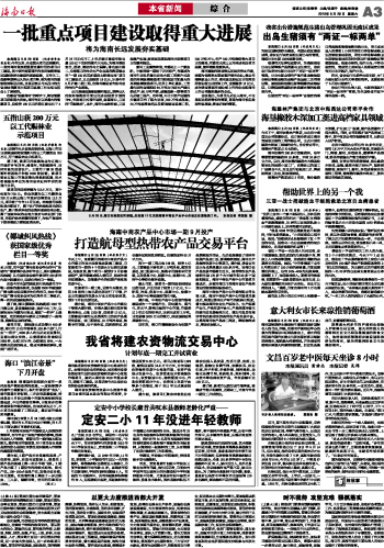 海南日报 本省新闻 003 2010-05-291 2010年05月29日 星期六