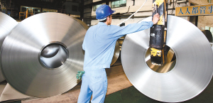 今天上午,海南海宇锡板工业有限公司生产车间里机器轰鸣,两条生产线和剪切生产线、涂漆生产线、彩印生产线都在开足马力生产,公司的仓库和车间已堆满了成品和半成品。