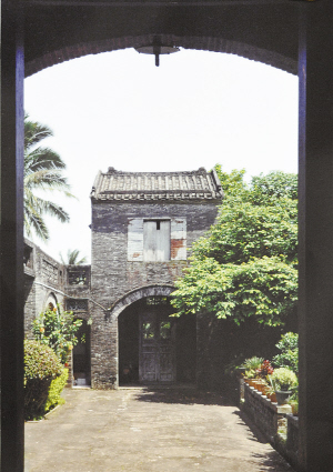 王家侨宅由三间并排大瓦房组成,头门是个小楼阁,构造玲珑精致,中西合璧,既有南洋的异国风情,又有中国传统的典雅庄严。头门对着厅堂大门,楼阁下设置了一道屏风。“这道屏风是用来隔绝外头的视线的。头门一开,外边的人不能直接看到院内的活动,保护了居家的私密性。”阎根齐说。