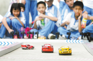 5月30日,由共青团海口市美兰区委、美兰区教育局联合举办的庆六一遥控车模型挑战赛在海口市第七中学举行,来自美兰区28所中小学近500余名爱好遥控车模的学生参加比赛。车模比赛丰富了孩子们的科普知识和课外业余生活,培养了孩子们的动脑和动手能力。 本报记者 李英挺 摄