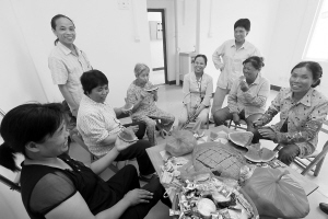 5月31日,廉租房住户、残疾人谭文非(右四)在新房里招待客人。当日,广西贵港市220户廉租房住户喜迁贵港市南江点的廉租新房,成为2008年贵港市廉租住房开工建设以来首批住户。目前,贵港市还有10多万平方米的廉租住房正在加紧建设,可望在今年8月底前竣工。 新华社发