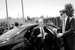 5月31日,土耳其驻以色列大使奥乌兹·切利克科尔抵达位于耶路撒冷的以色列外交部出席会议。 新华社/法新