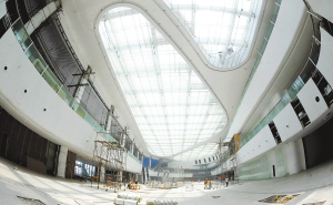 5月31日,邮轮母港大厦内部装饰及设备安装进入收尾阶段。
