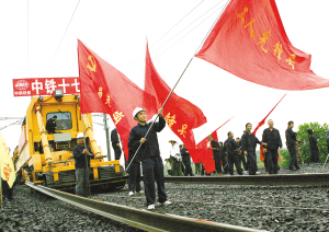 5月31日下午5时,中铁17局海南铺架队工人冒雨铺设完最后一段铁轨。至此,由该局承担的东环铁路北段暨海口至博鳌分界点铺轨任务完成,为东环铁路全线贯通奠定了扎实基础。 本报记者 古月 摄