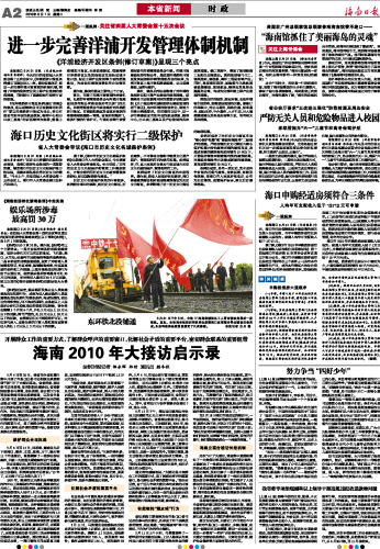 海南日报 本省新闻 002 2010-06-011 2010年06月01日 星期二