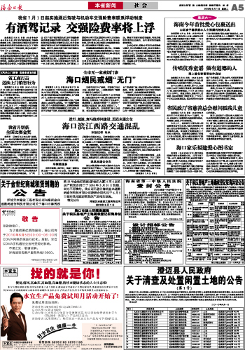 海南日报 本省新闻 005 2010-06-011 2010年06月01日 星期二