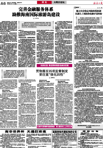 完善金融服务体系助推海南国际旅游岛建设