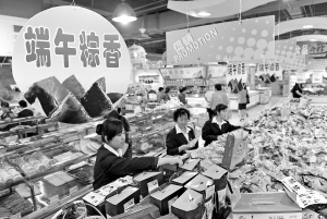 6月2日,销售人员在银川市一家商场推出的粽子销售专柜前整理商品。虽然距端午节还有一段时间,但是在宁夏银川市各大超市里,粽子销售大战已悄然打响。 新华社记者 王鹏 摄