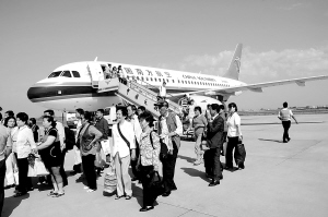 6月5日,乘坐首航班机的旅客从韩国首尔抵达中国佳木斯。 当日,中国佳木斯———韩国首尔国际航线首航仪式在佳木斯机场举行。该航线的开通将推动中国黑龙江省东部地区与韩国在旅游、文化、经济等方面的交流。 新华社发(张双林 摄)