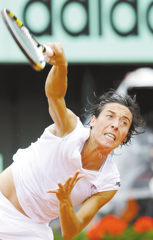 北京时间6月5日晚,在2010年法国网球公开赛女单决赛中,两位首次打进大满贯决赛的选手--7号种子、澳大利亚悍将斯托瑟和17号种子意大利老将斯齐亚沃尼展开厮杀,最终斯齐亚沃尼凭借每盘后半段的精彩发挥,以6:4/7:6(2)战胜对手,捧起了个人职业生涯首个大满贯冠军奖杯,这也是意大利女子选手自公开赛时代以来获得的首个大满贯单打锦标。图为斯齐亚沃尼在比赛中。 小新发