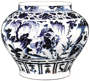 2005年7月12日,伦敦佳士得拍卖现场,一件高27.5cm,直径33cm的元代青花人物图罐———“鬼谷下山图罐”,竟然拍出2.3亿元人民币的天价,若以当天的黄金牌价估算,相当于整整两吨黄金,续写了元青花的不朽神话。