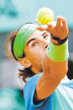 本报讯 北京时间6月6日晚,在2010年法国网球公开赛男单决赛中,西班牙选手纳达尔直落三盘(6:4/6:2/6:4)击败瑞典悍将索德林,第5次捧起法网冠军奖杯。纳达尔将在下周一的最新一期排名榜上再次超越瑞士球王费德勒,重登世界第一王座。此外,纳达尔以横扫红土赛季三项大师系列赛以及法网大赛桂冠,实现了前辈均未能达成的“红土大满贯”惊人成就。 (新文)