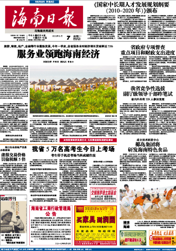 海南日报 头版 001 2010-06-071 2010年06月07日 星期一