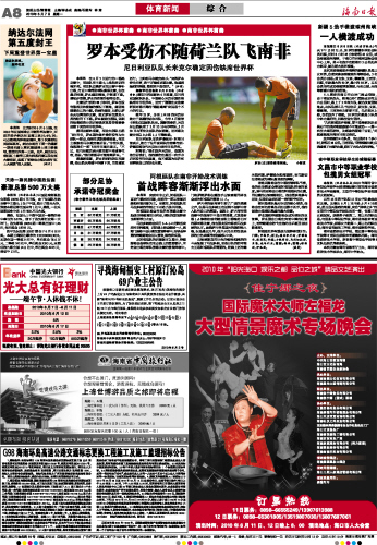 海南日报 体育新闻 008 2010-06-071 2010年06月07日 星期一