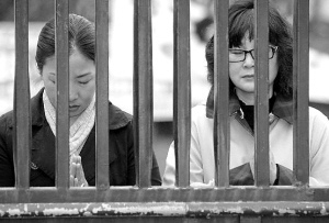 | 在韩国京畿道水原市某高中考场外,考生家长为子女祝福。(资料照片) 新华社发 |
