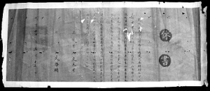 休书的内容为:“文门江氏原籍河南省博爱县朱村二甲人,光绪十年因遭天祸自(只)身逃难来到山西,举目无亲,经邻说合嫁入文门。圆房之后只生一女。去年七月十七日偶遇原籍老乡得知老家父母病重非要回家省亲,岂料回来之后一改昔日面目,整天走东窜西招惹闲言非语,近日又把家中财物盗出不知送往何处,为此特书休书,自即日起逐出文门,日后任其自便,文门上下均不讯问,立字存照。立休书人:文天才,族长:文启明。”同时加盖有当时县衙的大红印章。