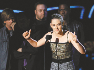 | 《暮光之城2:新月》女演员克里斯汀·斯图尔特发表获奖感言 新华社发 |