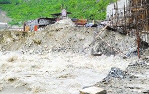 都汶公路70米路基被大水冲毁