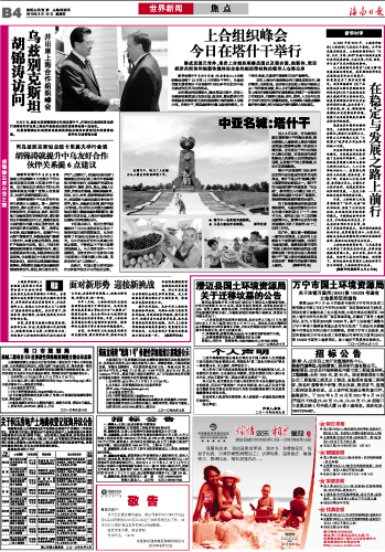 上合组织峰会今日在塔什干举行