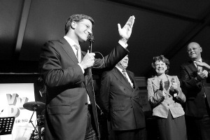 荷兰全国议会选举初步统计结果显示 自民党一席优势暂时领先 6月9日,自民党领导人马克·吕特(前)庆祝胜利。初步统计结果显示,荷兰自民党以一席微弱优势暂时位列全国议会二院(下院)议席数榜首,有望优先获得组阁权。如果最终确认,这将是该党自1948年成立以来首次成为荷兰议会二院第一大党。 新华社/法新