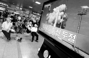 | ←6月10日,民众在韩国首都首尔关注“罗老”号运载火箭发射情况。