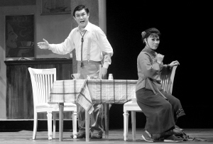 | 张卫山(左)在新版《下南洋》中 本报记者 陈德雄 摄 |