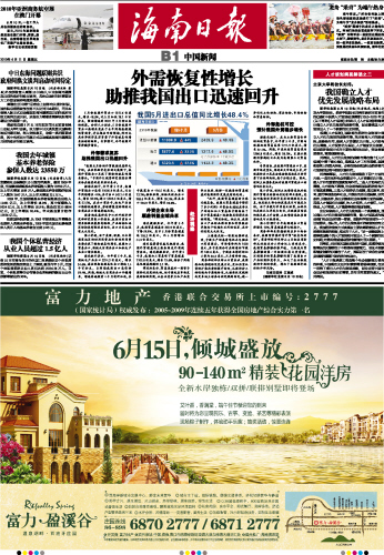 海南日报 中国新闻 009 2010-06-111 2010年06月11日 星期五