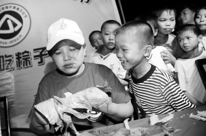 今天,30名绑粽子高手与30名吃粽子高手在美食街参加绑粽子和吃粽子比赛。30名绑粽子参赛选手全部来自定城地区。当裁判宣布比赛开始后,参赛选手们迅速戴上手套,穿上厨服,将艾叶铺好,然后放米、放肉,包好,再用线将粽子绑好。经过激烈的角逐,最后王少英获得绑粽第一名,得到奖励500元。