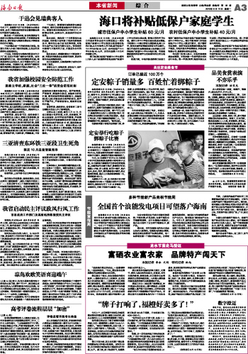 海南日报 本省新闻综 合 003 2010-06-141 2010年06月14日 星期一