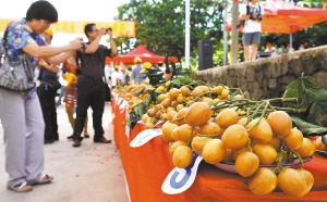 | 6月14日,在2010年海口(秀英)黄皮大比拼活动现场,种植户展示个大味美的黄皮。