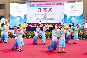 图为6月11日开幕式现场,极具地方特色的儋州调声、歌舞引人关注。