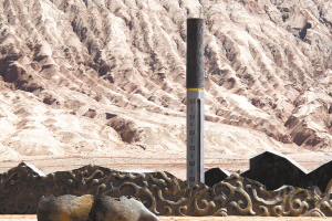 6月16日中午,吐鲁番火焰山风景区的巨型电子温度计显示当时的温度为54摄氏度。 当日,被誉为“火洲”的新疆吐鲁番的最高气温飙升至43摄氏度,在距离吐鲁番市区40公里左右的火焰山风景区,高温时段的气温超过50摄氏度。 新华社发 43℃