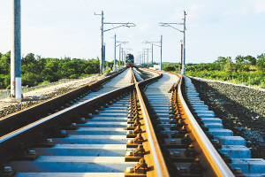 | 6月20日下午6时,备受关注的我省头号工程———东环铁路南北双线在万宁市和乐车站实现对接,轨道精捣精调、动车组上线等各项前期工作同时全面铺开,为今年年底投入运行奠定基础。图为东环铁路万宁和乐段。 本报记者 古月 摄 |