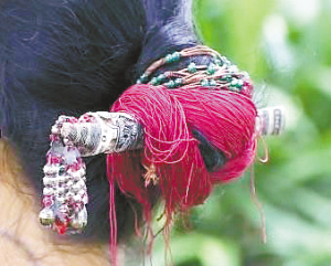 据说,黎族青年成婚时,新娘除佩戴耳环、项圈、手镯、脚环等,头上还会排列插饰着十几根发簪,显得古朴典雅,美观大方。