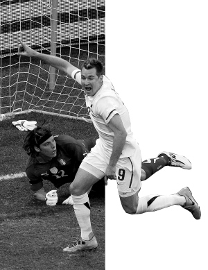| 6月20日,在内尔斯普雷特进行的南非世界杯F组比赛中,意大利队以1比1战平新西兰队。图为新西兰队球员沙恩·斯梅尔茨(前)进球后庆祝。 新华社发