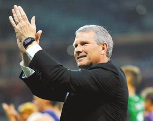 ↑逼平意大利,新西兰主教练赫伯特鼓掌。