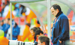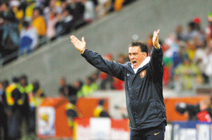 ↑葡萄牙主教练奎罗兹欢呼胜利。